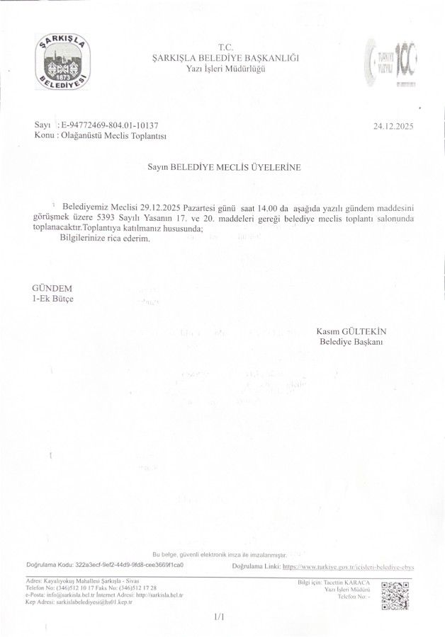 Aralık Ayı Olağanüstü Meclis Toplantı Gündemi