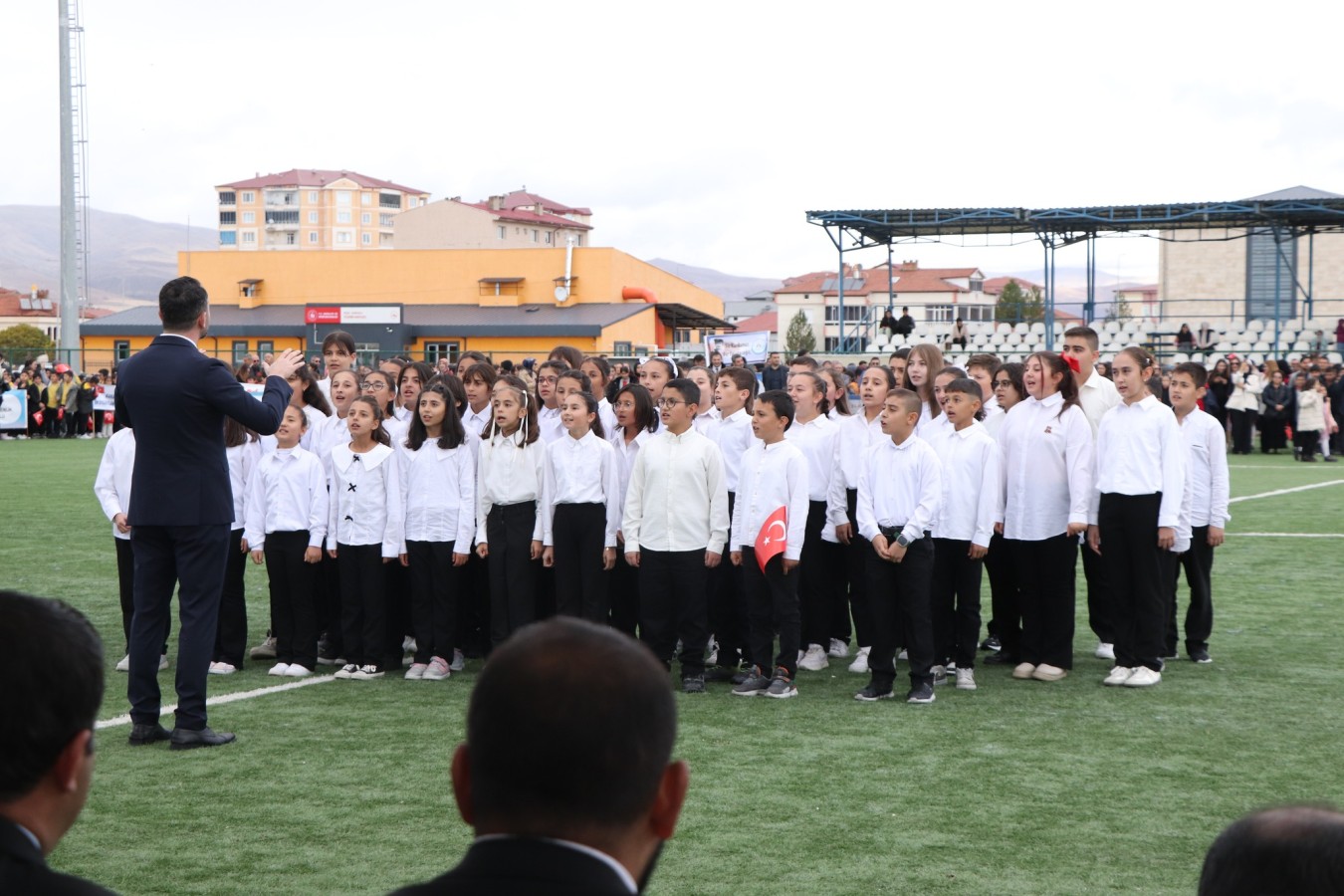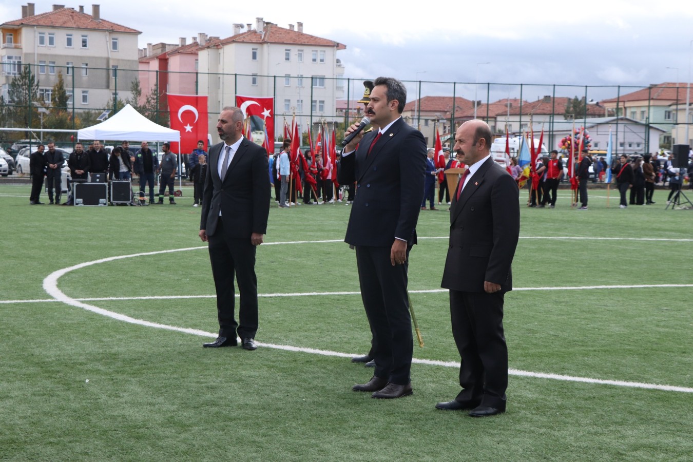 Kaymakamlık makamında tebrik kabulüyle başlayan program, ilçe stadyumunda öğrencilerimizin hazırladığı çeşitli gösterilerle devam etti.