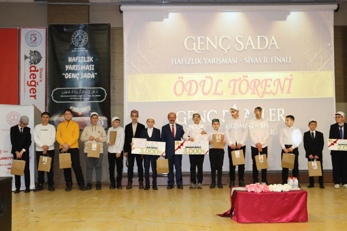 Şarkışla 15 Temmuz Milli İrade İmam Hatip Ortaokulu koordinatörlüğünde gerçekleştirilen İmam Hatip Ortaokullar arası “Genç Sada Hafızlık Yarışması“ ve “Genç Bilaller Ezan Okuma Yarışması“ Sivas İl Finali, Belediye Başkanımız Kasım Gültekin, Kaymakamımız Zekeriya Murat Şahan, Sivas İl Milli Eğitim Müdürü Fatih Erdoğan ve ilgili kurum müdürlerinin katılımlarıyla Aşık Veysel Kültür Merkezinde gerçekleştirildi.