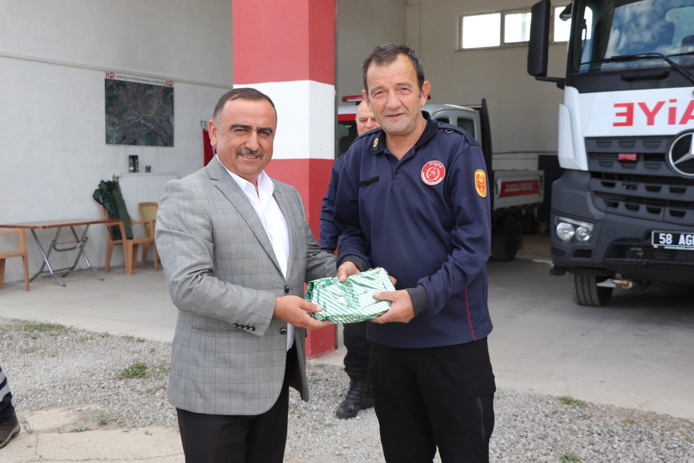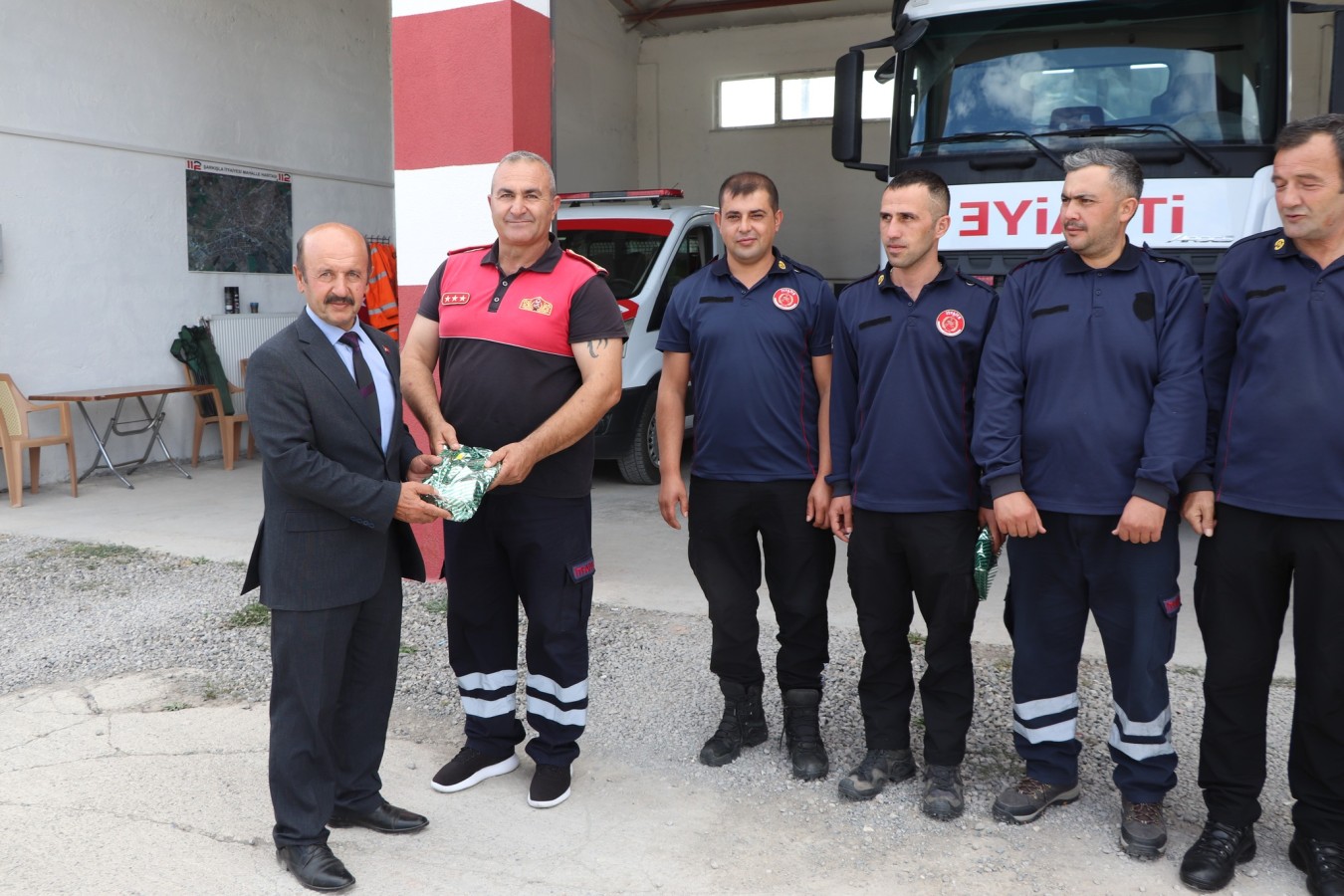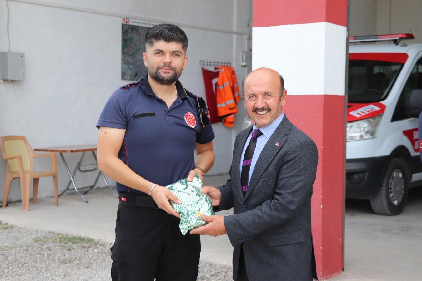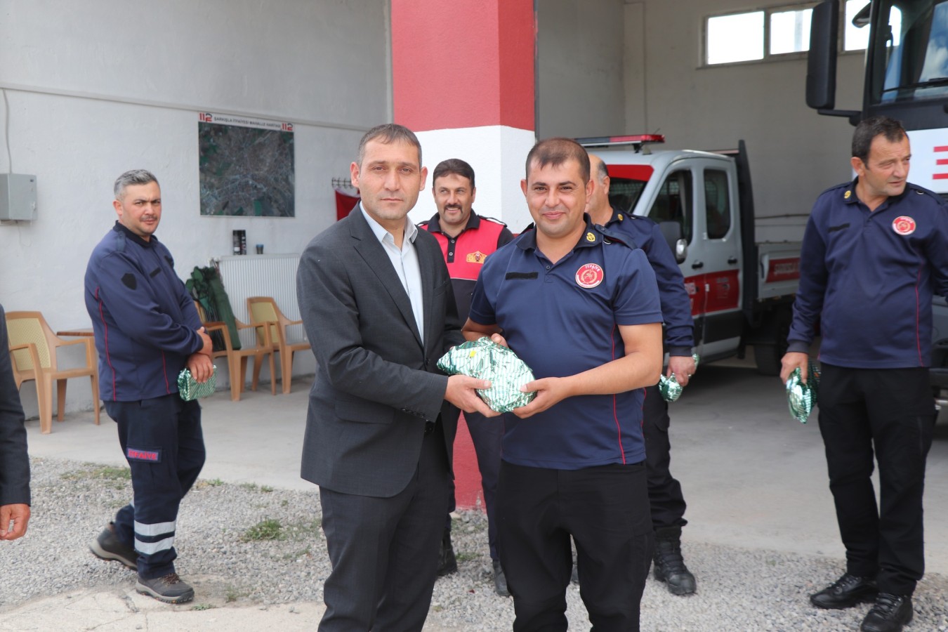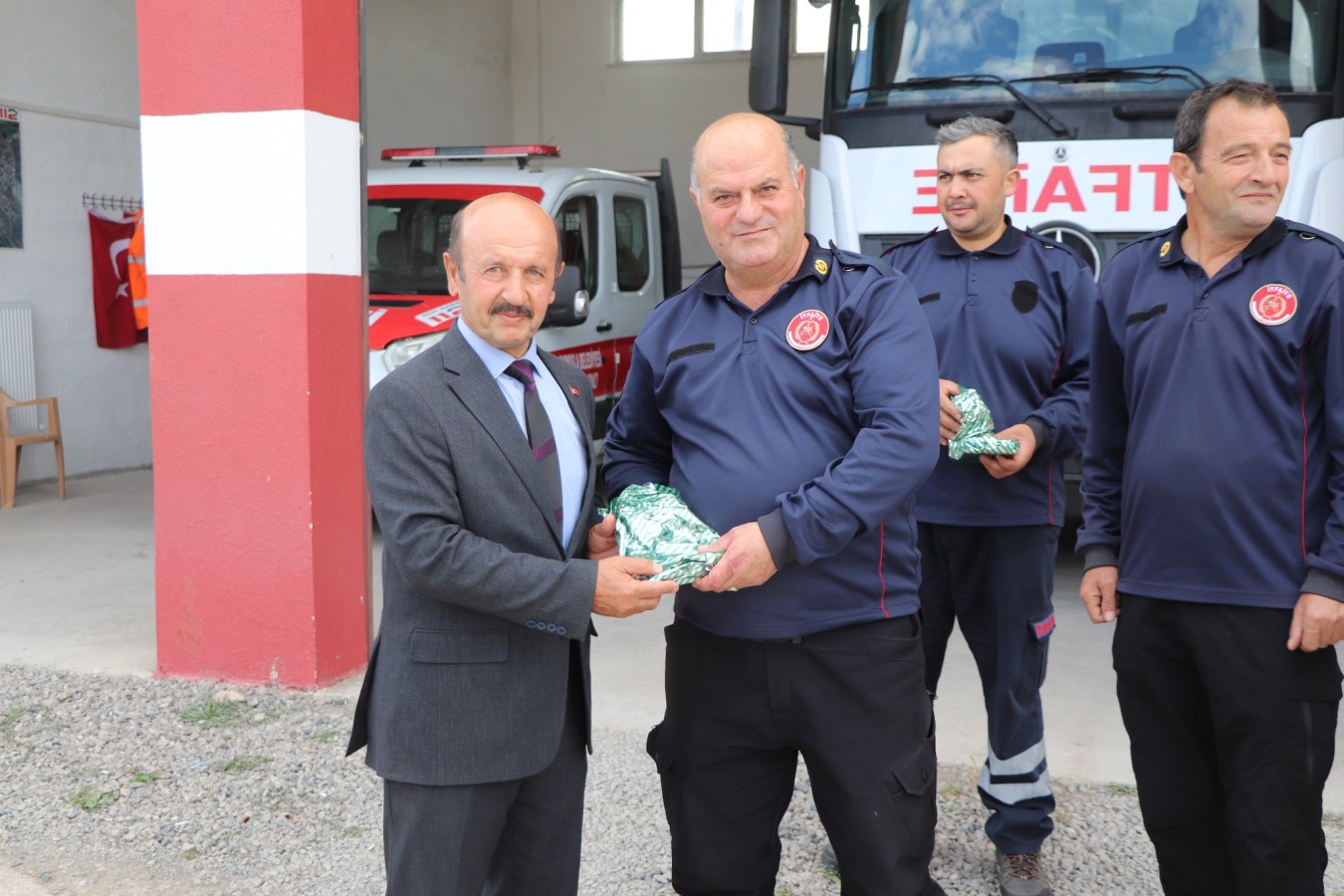 Ziyarette fedakârca görev yapan itfaiye personelimize hediyeler takdim edildi.