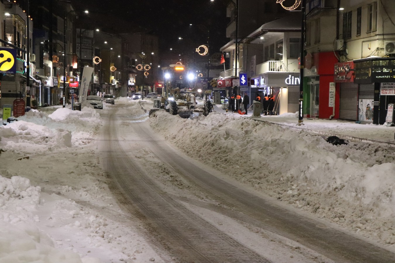 İlçemizde güvenli ulaşımı sağlamak amacıyla karla mücadele ekiplerimiz yılbaşı gecesi temizlik ve yol açma çalışmalarını aralıksız sürdürüyor.