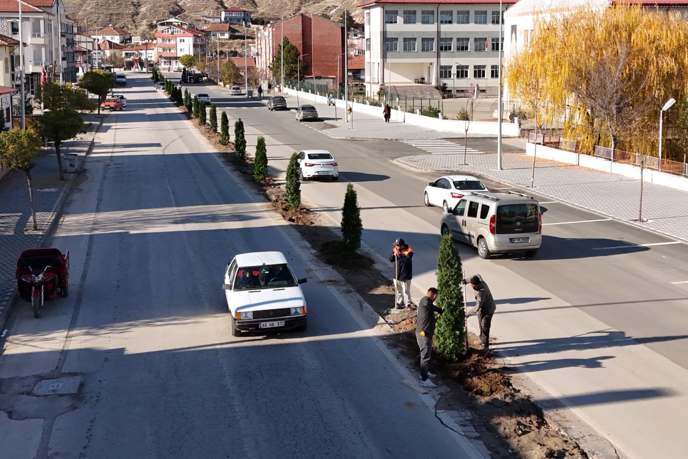 Cadde iyileştirme çalışmalarımız kapsamında orta refüjde ağaçlandırma çalışmalarımız tüm hızıyla sürüyor.