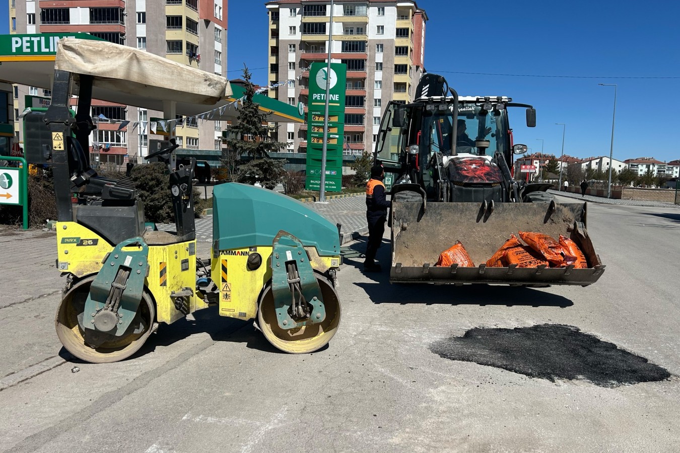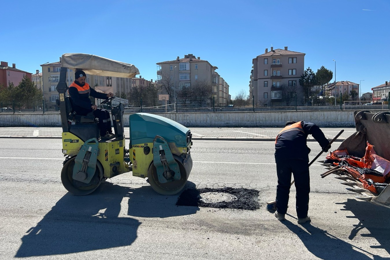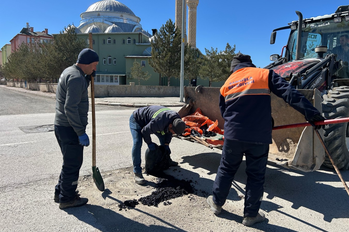 Geçirdiğimiz kış mevsimi sonrası deforme olan yol ve asfaltlarda soğuk asfalt yama çalışmaları gerçekleştirerek yollarımızı daha güvenli ve konforlu hale getiriyoruz.,